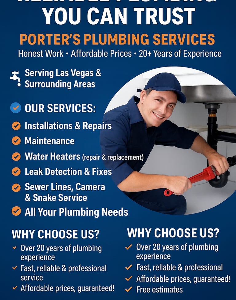 Serving Las Vegas, North Las Vegas, Henderson, and Pahrump with trusted, affordable plumbing services by William Porter.